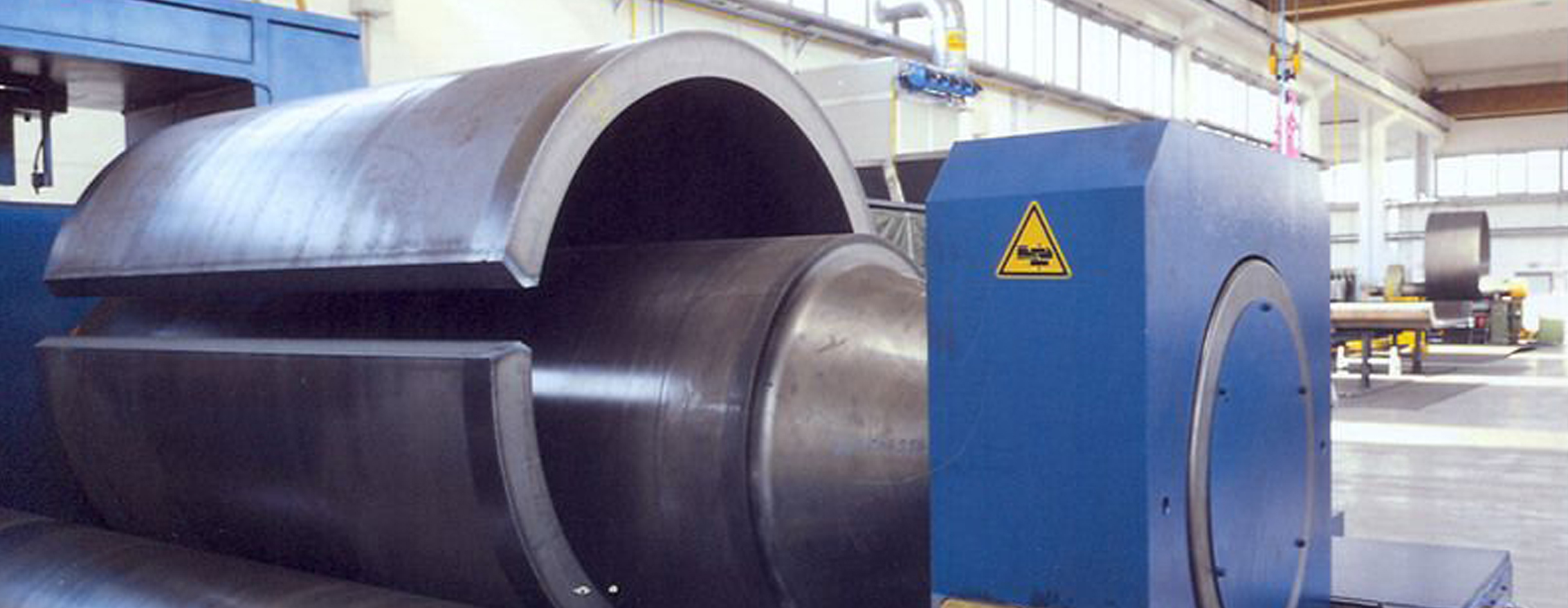 水平下調(diào)式三輥卷板機可用于將一定厚度的金屬板材卷制成筒狀、弧形或一定錐度的工件。該設(shè)備可用于大型厚壁承壓設(shè)備、化工壓力容器等產(chǎn)品的筒體卷制和焊后校圓,